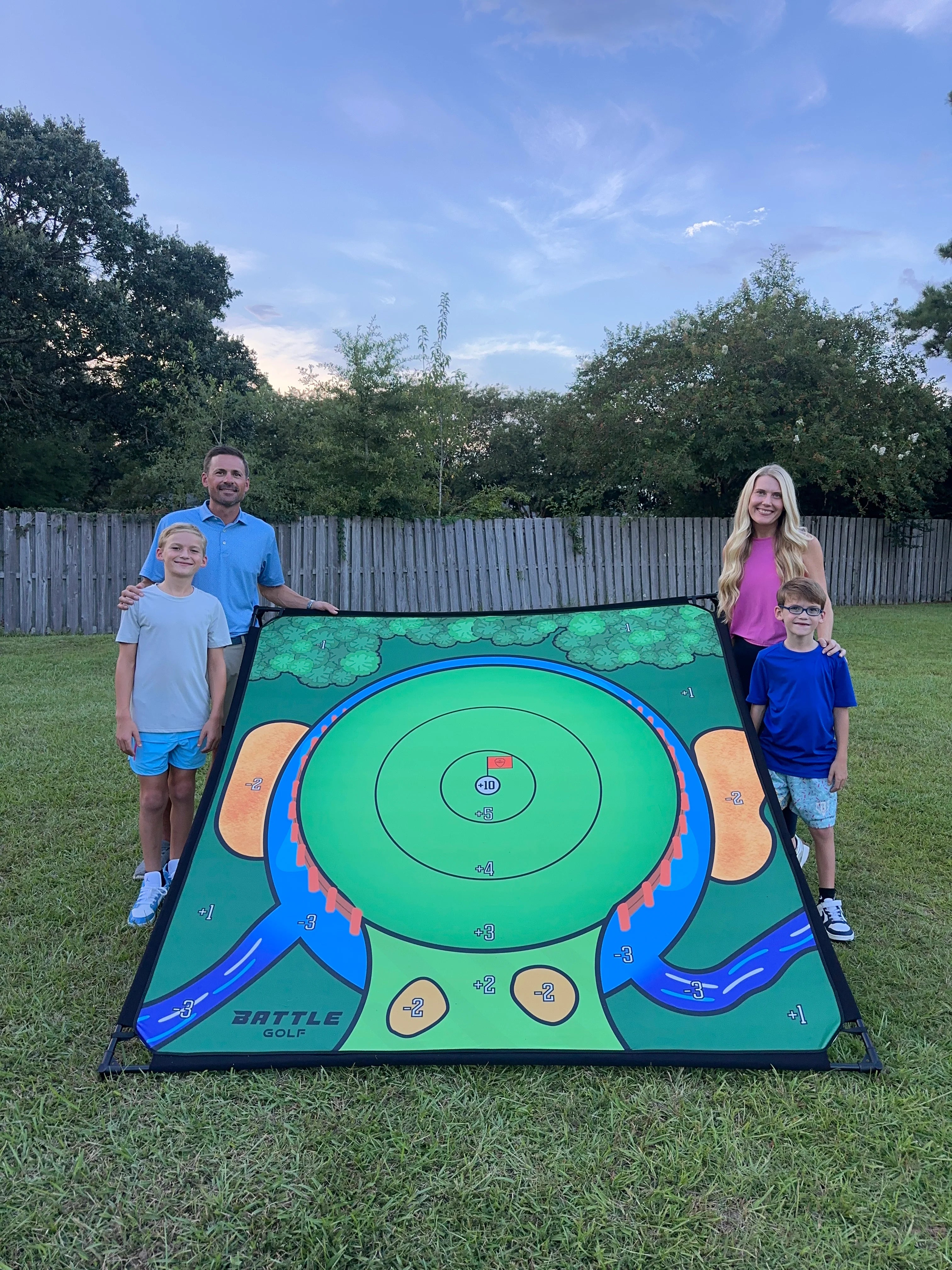 Transform any space into your family's golf arena. Indoors when it's raining, outdoors in the sunshine, standing up or laying flat, solo practice or family tournaments – Battle Golf adapts to your life, not the other way around.